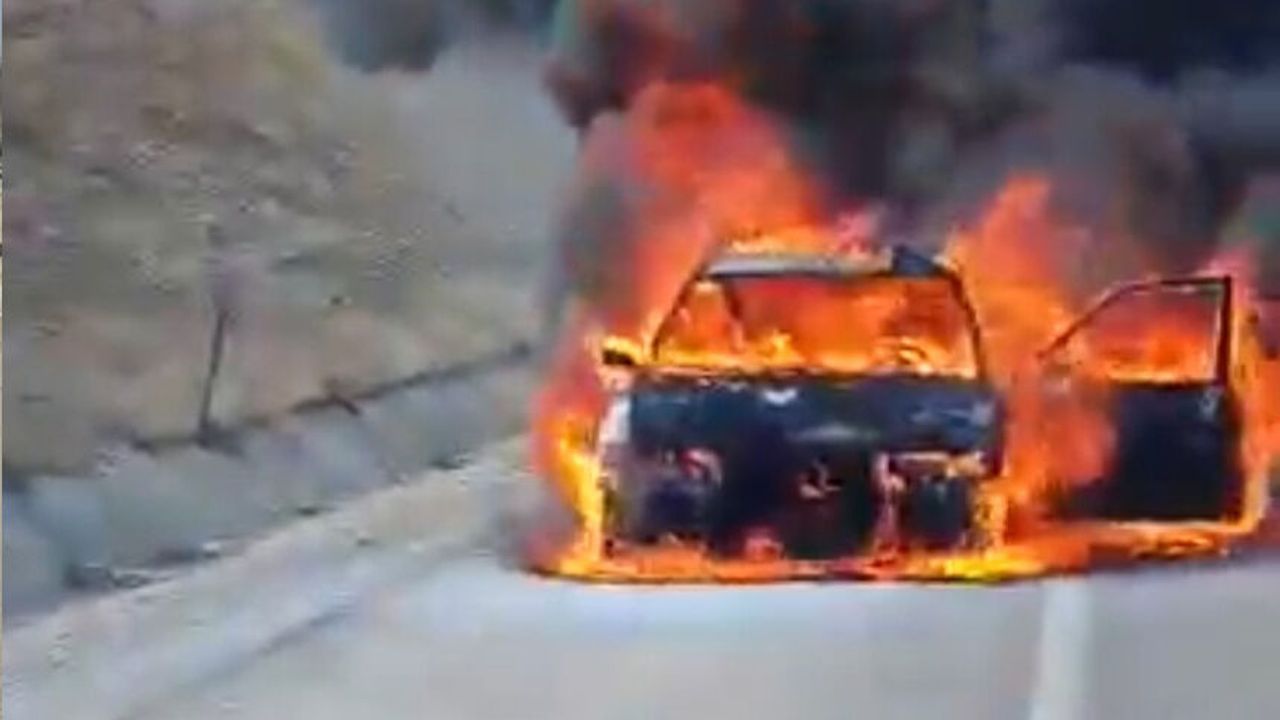Henüz birkaç saat önce aldığı araç seyir halindeyken yanarak hurdaya döndü.