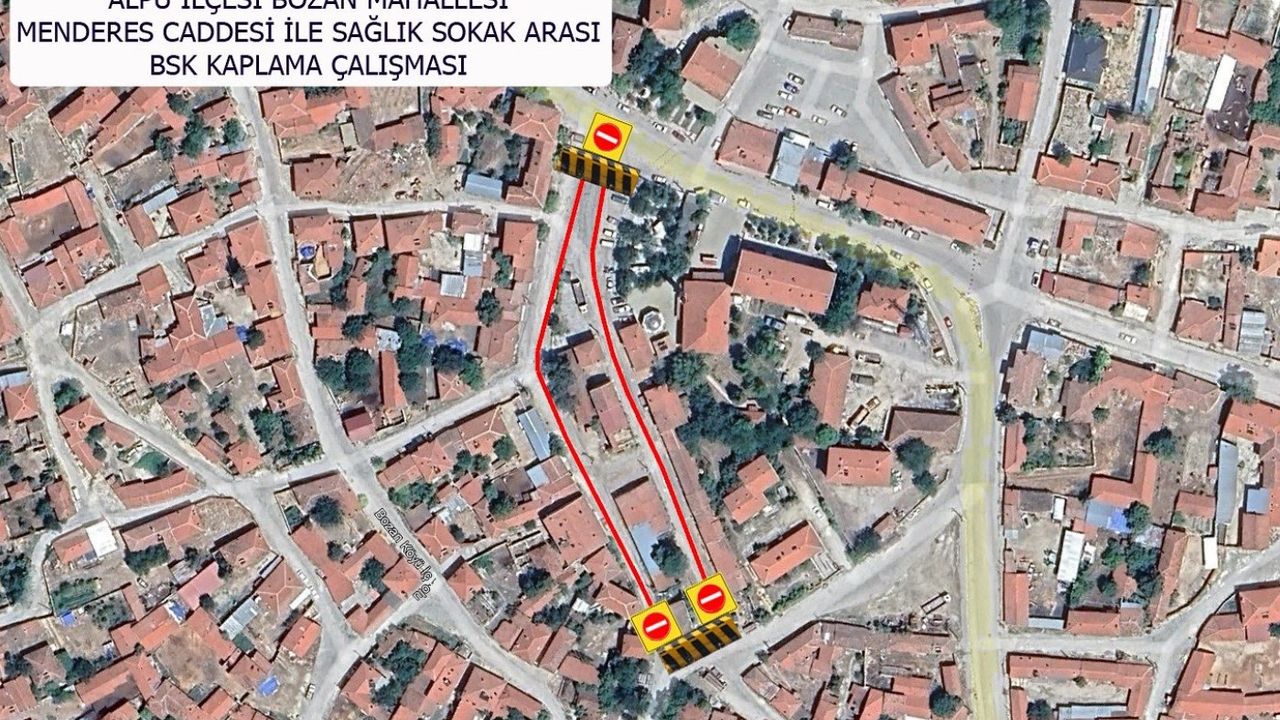 Alpu ilçesi Bozan Mahallesi’nde yol konforunu artırmak amacıyla asfalt yenileme çalışmaları başlıyor. Yol Yapım Bakım ve Onarım Dairesi Başkanlığı tarafından yapılacak BSK asfalt kaplama çalışmaları nedeniyle, Menderes Caddesi ile Sağlık Sokak 8 Ekim 2025 tarihinde kapanan yol 14 Ekim 2025 (bugün) saat 18.00’e kadar trafiğe kapalı tutulacak.