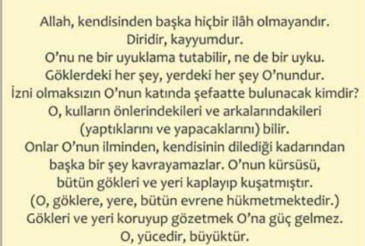 Konumu: Bakara Suresi, 255. ayet.