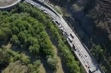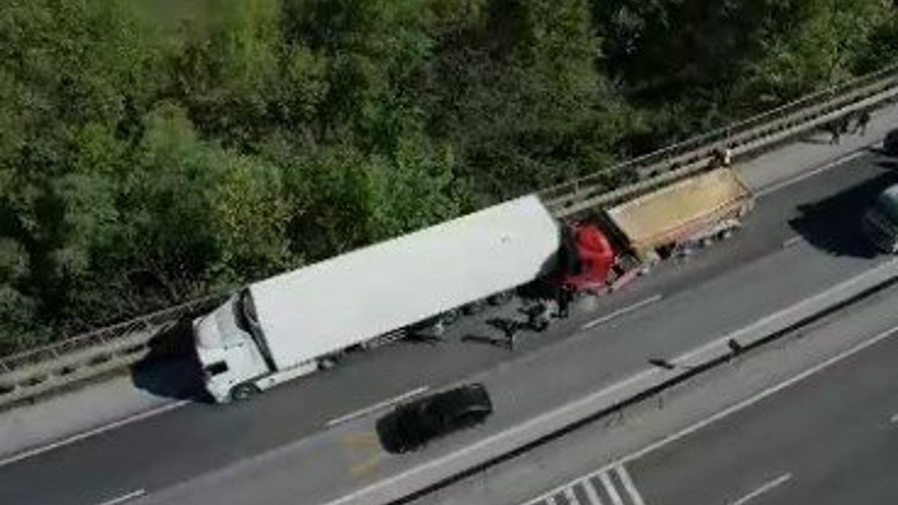 Kazada oluşan yoğun trafik ise havadan görüntülendi. Olayla ilgili inceleme başlatıldı.
