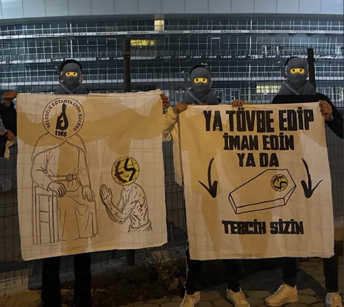 Yetkililer, olası gerginliklerin önüne geçmek adına bölgede güvenlik tedbirlerinin artırıldığını belirtirken, taraftar gruplarına sağduyu çağrısı yapıldı. Kütahyaspor taraftarları, Eskişehir Atatürk stadyumu önünde açtığı pankart: