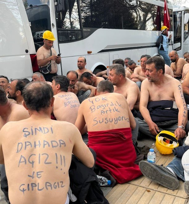 Emekleri için kilometrelerce yol giden işçiler Ankara’da Enerji ve Tabii Kaynaklar Bakanlığı önünde açlık grevi başlattı. Verilen sözlerin tutulması için haykıran işçilere emniyet tarafından müdahale edildi, ablukaya alındı ve birçoğu gözaltına alınıp serbest bırakıldı.