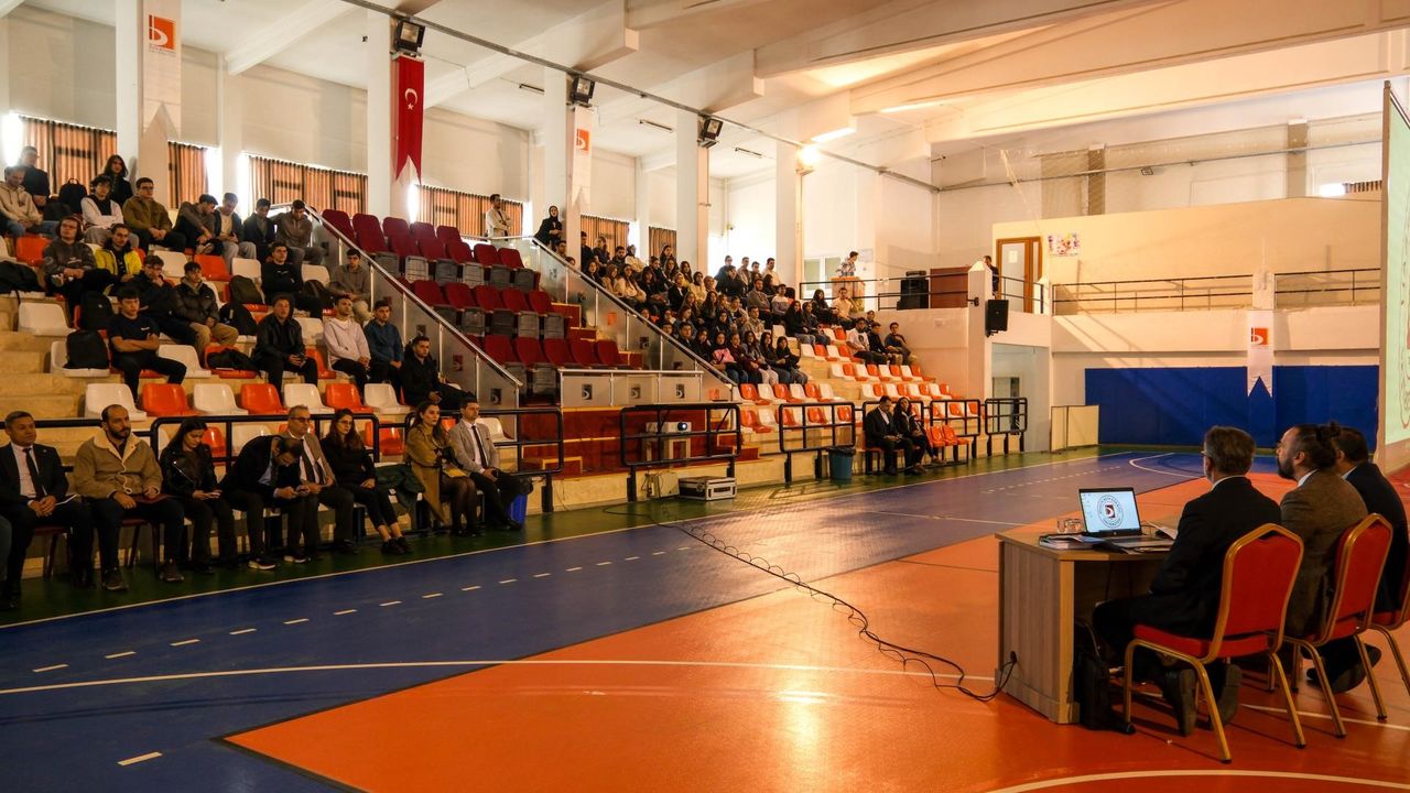 Üniversitenin spor salonunda düzenlenen programa yeni kayıt yaptıran öğrenciler, akademik ve idari süreçler hakkında kapsamlı bilgilendirme aldı. Programda, Rektör Yardımcısı Prof. Dr. Murat Yurdakul, Genel Sekreter Yardımcısı Fakrullah Tohumcu, Öğrenci İşleri Daire Başkanı Sezer Kuyucu, akademik ve idari personel ile öğrenciler hazır bulundu. Sağlık, Kültür ve Spor Daire Başkanlığı, Kütüphane ve Dokümantasyon Daire Başkanlığı, Sağlık Bilimleri Fakültesi, UZEM, Kariyer Merkezi gibi birimlerin katılımıyla gerçekleşen sunumlarda; kampüs yaşamında güvenlik, kariyer planlama, dijital kaynakların kullanımı ve öğrenci kulüpleri hakkında detaylı bilgiler paylaşıldı.