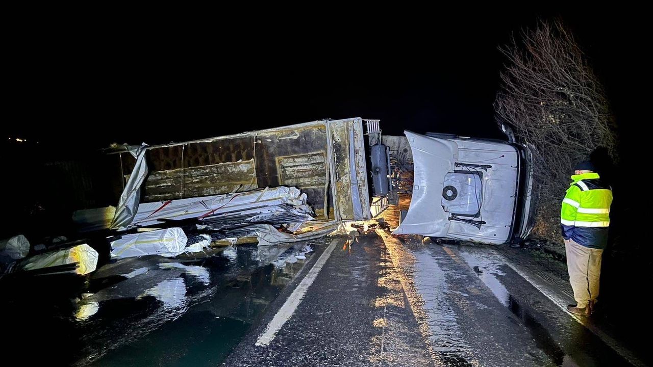 Bilecik'in Osmaneli ilçesi Beşevler Köyü mevkiinde Sakarya-Pamukova karayolunda dün gece meydana geldi. Edinilen bilgilere göre, 67 AY 320 plakalı çekici tırın sürücüsü Berkan Ş., direksiyon hakimiyetini kaybedince araç kontrolden çıkarak kaza yaptı. Kazanın ardından Pamukova-İznik istikameti geçici olarak trafiğe kapatılırken, sürücüler Bilecik istikameti üzerinden D-650 karayoluna yönlendirildi.