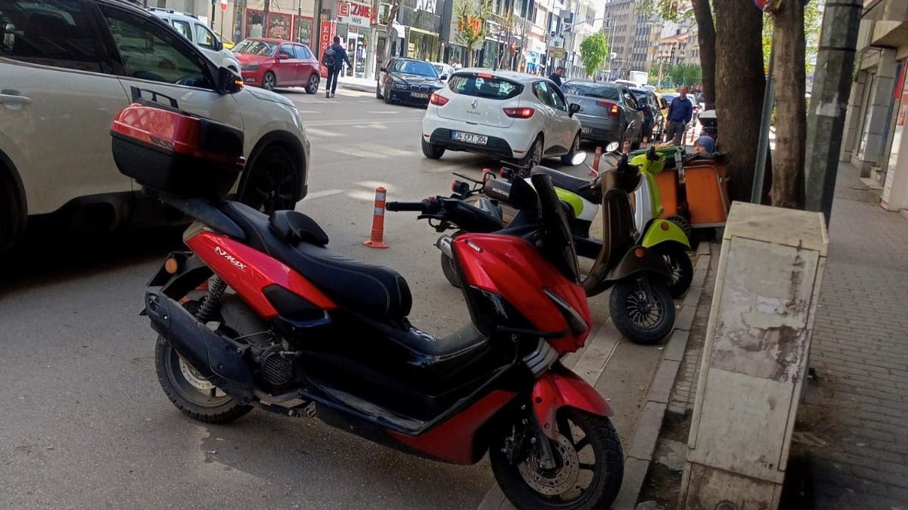 Dubaların araç girişini sınırladığı noktada motosikletlerin bu boşlukları değerlendirerek park ettiği, kaldırım ve yol kenarı arasında sıkışık bir görüntü oluştuğu gözlemlendi.