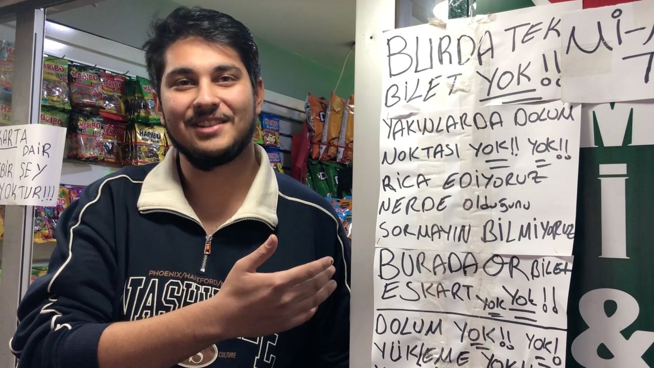 Market, toplu taşıma kartı ESKART ve tek kullanımlık bilet satışına yönelik sürekli sorular nedeniyle bunalmıştı. Çetinkaya, çözümü marketin önüne astığı notlarda buldu. Notlarda, "Burada bilet yok, yakınlarda dolum noktası yok, rica ediyoruz nerede olduğunu sormayın bilmiyoruz, burada karekod bilet, ESKART yok, dolum yok, yükleme yok, yok yok yok yok" ifadeleri yer aldı.