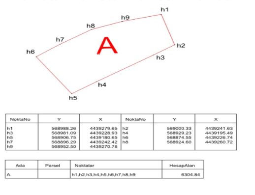 Taşınmaza ait koordinat ve yüzölçüm hesabı aşağıda gösterilmekle; Dava konusu taşınmaz Eskişehir İli, Sarıcakaya İlçesi, Düzköy Mahallesi doğusu 845 ada 10 parsel olan A harfi ve kırmızı kalemle boyalı gösterilen 6304.84 m²'lik tesis kadastrosu ve güncelleme evraklarına göre Çatlak Çayı içerisinde kalan yerdir.