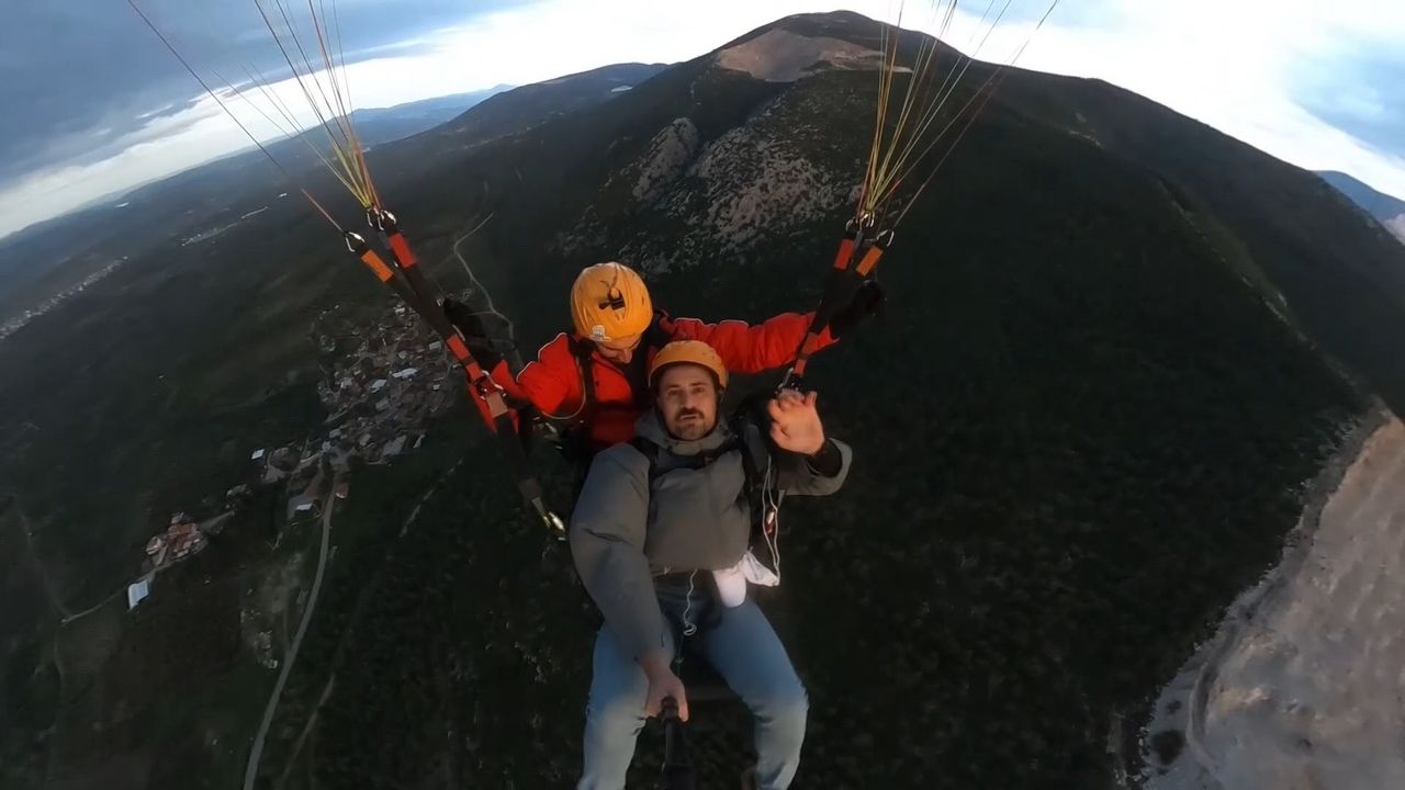 Özel Eğitim Öğretmeni Abdullah Yeşil ve paraşüt eğitmeni Yiğit Kartal, Bubeyler mevkiinde gerçekleştirdikleri tandem yamaç paraşütü uçuşuyla özel gereksinimli çocuklara destek çağrısını gökyüzüne taşıdı.