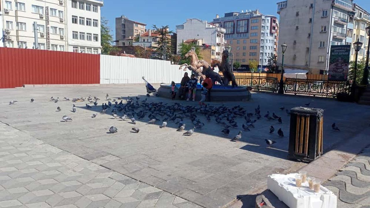 Görselde de görüldüğü üzere, güvercinler genellikle heykelin çevresinde toplanıyor. Çocuklarıyla birlikte meydanı ziyaret eden vatandaşlar, kuşlara yem atarak keyifli anlar geçiriyor. Eskişehir’in merkezindeki bu alan, hem yerli halk hem de turistler için adeta küçük bir huzur noktası haline gelmiş durumda.