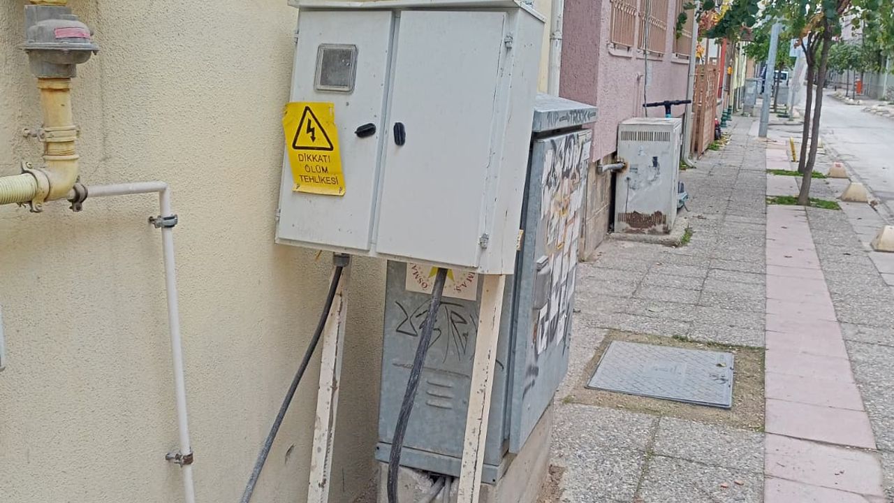 Eskişehir’in İstiklal Mahallesi’nde, uyarı etiketi taşımasına rağmen tehlike arz eden bir elektrik panosu, bölgeden geçen vatandaşların dikkatini çekiyor.