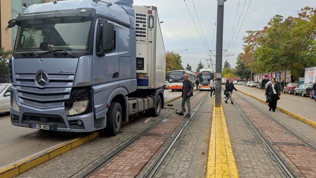 Eskişehir’de sabah saatlerinde meydana gelen kazada, kontrolden çıkan bir tır tramvay yoluna girdi. Olayda maddi hasar oluşurken, tramvay seferleri bir süre aksadı. Kaza, saat 09.00 sıralarında Fabrikacılar Caddesi üzerinde meydana geldi. Edinilen bilgilere göre, tırın sürücüsü direksiyon hakimiyetini kaybedince araç tramvay hattına girdi. Rayların kenarındaki taşlara takılan tır nedeniyle OTOGAR–SSK ve OGÜ–SSK hatlarında tramvay seferleri durduruldu. Ayrıca, bölgede karayolu trafiği de bir süreliğine kilitlendi.
