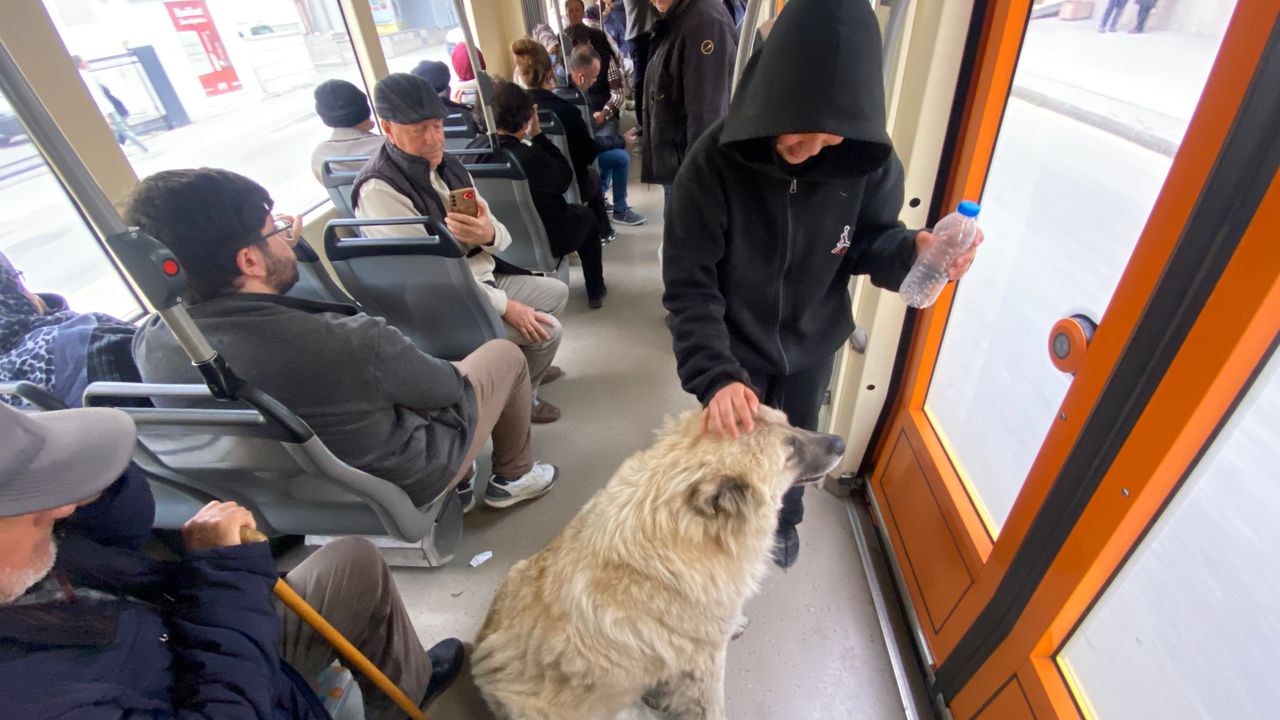 Tramvayda bulunan küçük bir çocuk, köpeği uzun süre sevip okşayarak ona şefkat gösterdi. Çocuğun uzaklaşmaya çalıştığı anlarda ise köpeğin patisiyle onu durdurup sevilmek istemesi, yolcuları gülümseten anlara sahne oldu. Renkli görüntüleri cep telefonlarıyla kaydeden yolcular arasında köpekten çekinip başka vagona geçenler de oldu. Sevimli misafirin tramvay yolculuğu, Atatürk Lisesi Durağı’nda son buldu.