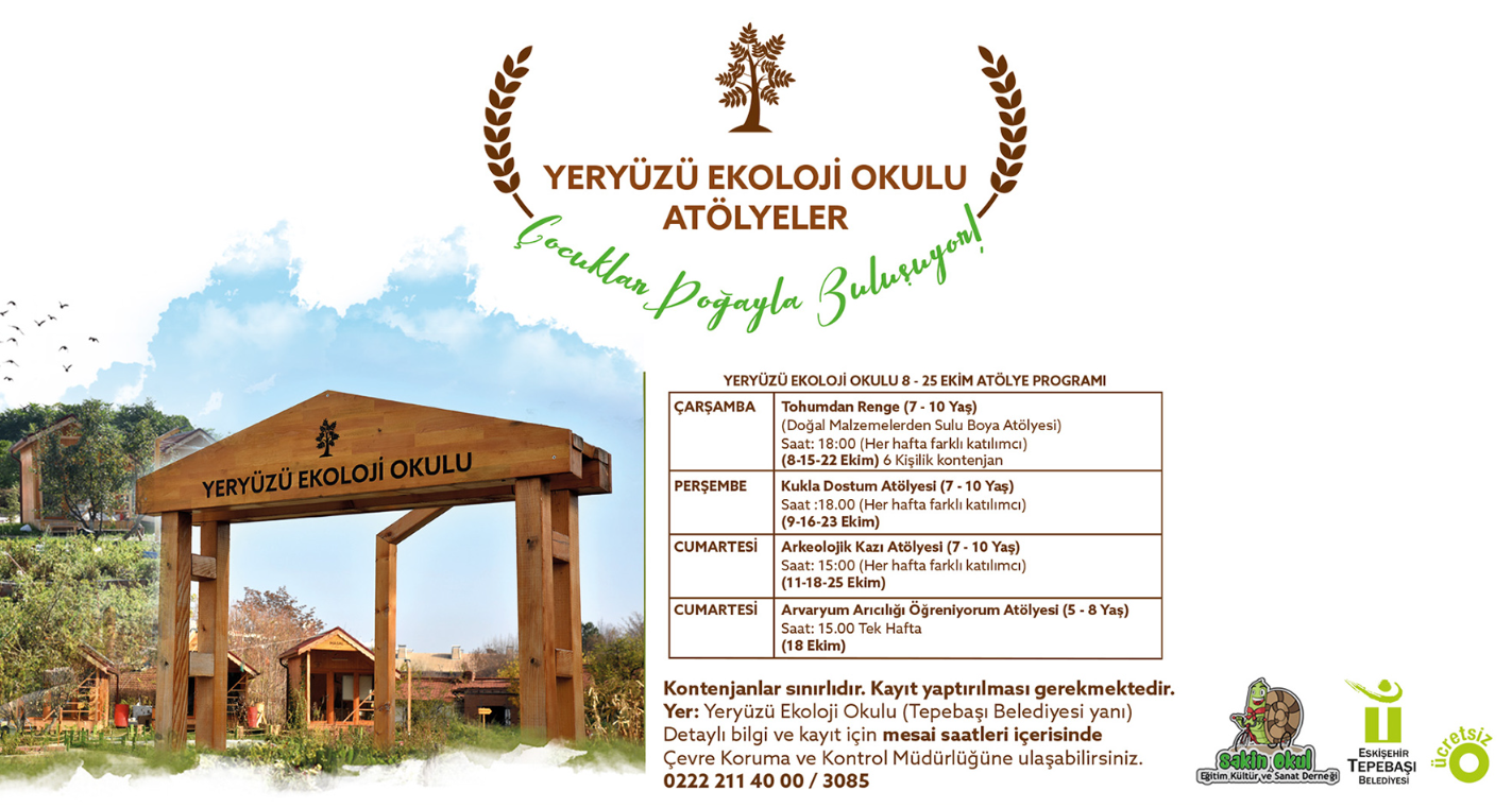Tepebaşı Belediyesi ile Sakin Okul Eğitim Kültür ve Sanat Derneği iş birliğinde hayata geçirilen Yeryüzü Ekoloji Okulu, doğayla iç içe, ücretsiz ve interaktif atölye çalışmalarına Ekim ayında da devam ediyor. Proje kapsamında, çocuklara yönelik eğitici ve eğlenceli etkinlikler 8-25 Ekim tarihleri arasında gerçekleştirilecek.