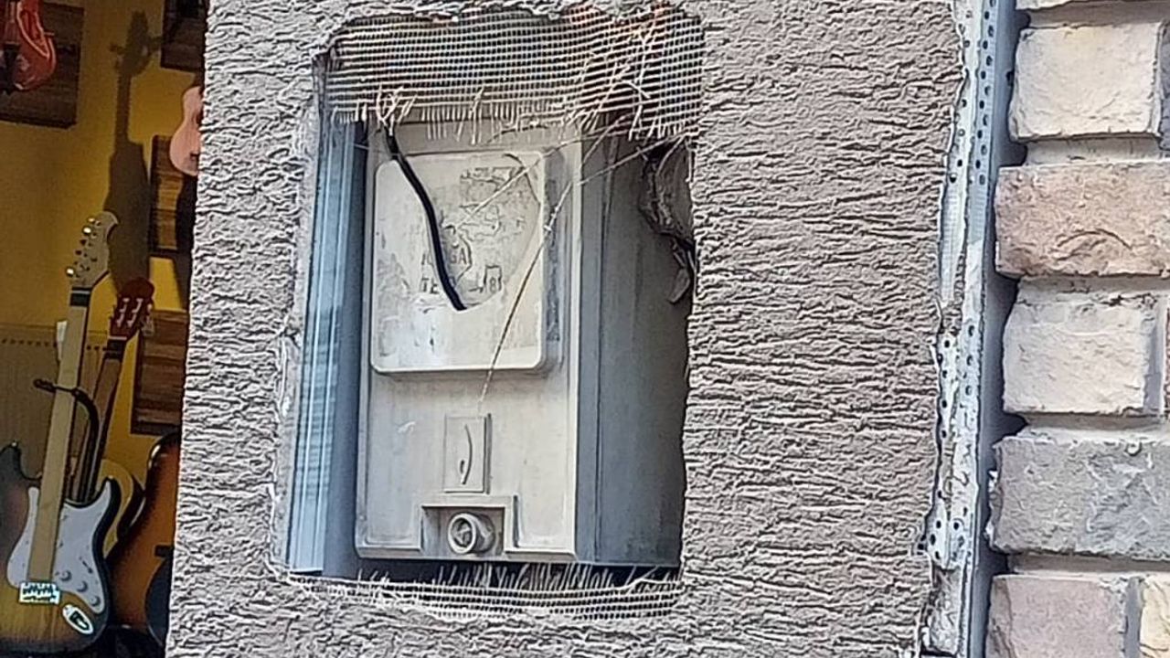 Bina cephesine gömülü şekilde bulunan panonun çevresindeki sıva ve kaplamanın da dökülmüş olması, yapının uzun süredir bakım görmediğini ortaya koyuyor. Açıkta kalan bölüm özellikle çocukların veya bilinçsizce yaklaşan kişilerin temas etmesi halinde ciddi tehlikelere yol açabilecek nitelikte.