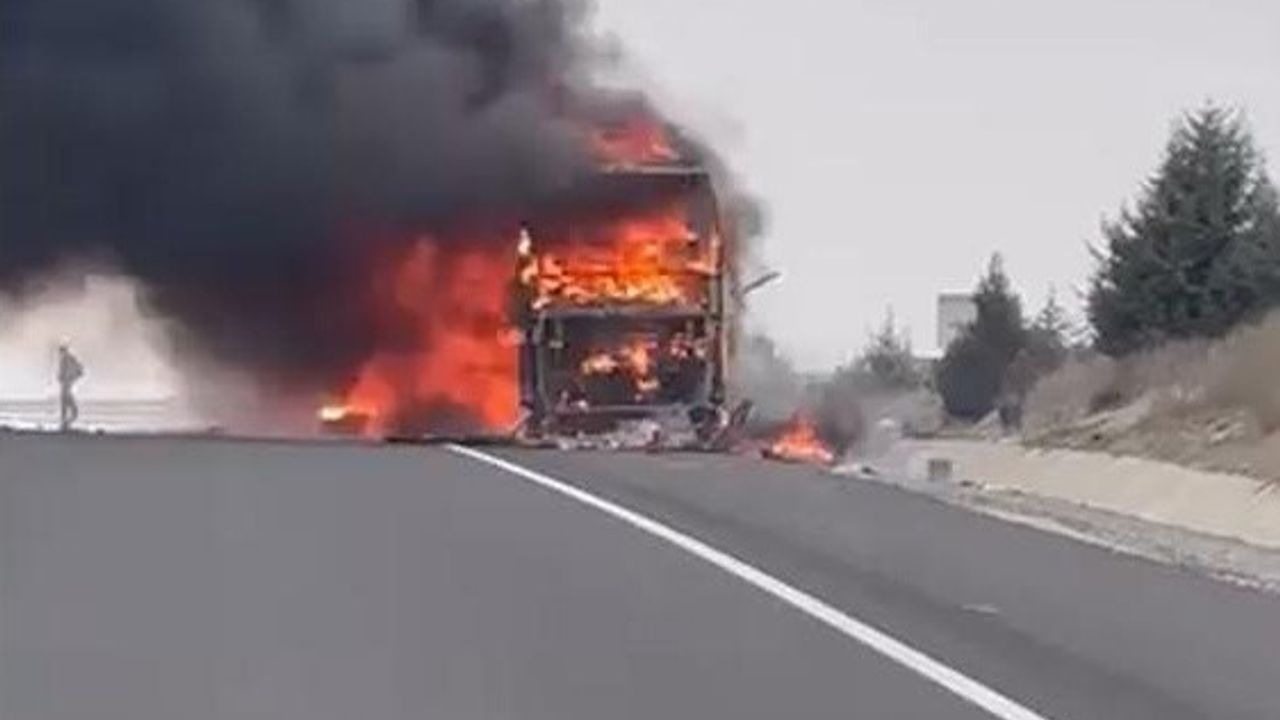 Eskişehir-Ankara kara yolunda seyir halindeki yolcu otobüsü, motor kısmında çıkan yangın sonucu alevlere teslim oldu. İçerisinde 25 yolcu, 2 şoför ve 1 muavinin bulunduğu otobüs, son anda tahliye edildi.