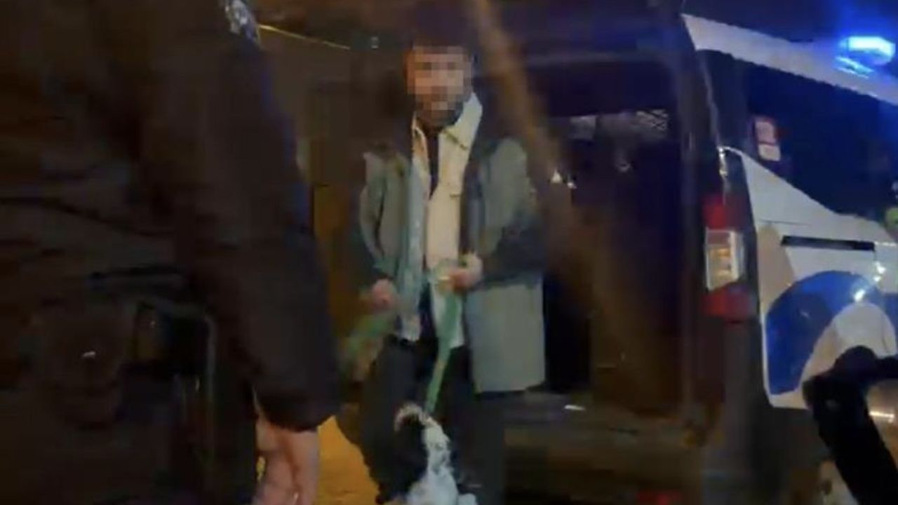 Sürücünün araçta köpeği ile seyahat ettiği görülürken, polis ekipleri işlemler için şahsı köpeğiyle birlikte ekip aracına bindirdi ve karakola götürdü. Olay, çevredeki vatandaşların da ilgisini çekti.