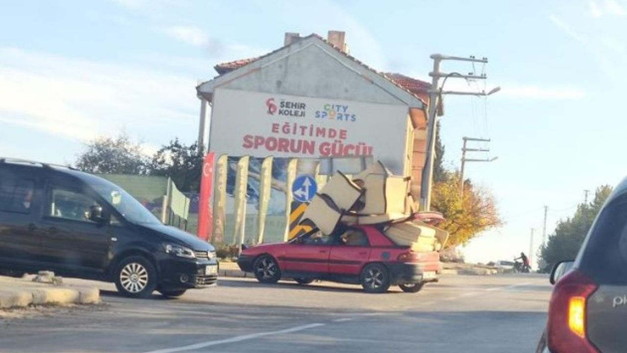 Eskişehir Yenikent Mahallesi Zümrüt Caddesi’nde, bir otomobilin bagaj ve arka kısmına yüklenen koltuk takımı trafiği tehlikeye düşürdü. Aracın üzerine yerleştirilen bazı koltuk parçaları, sürücünün ve diğer vatandaşların güvenliğini riske attı.