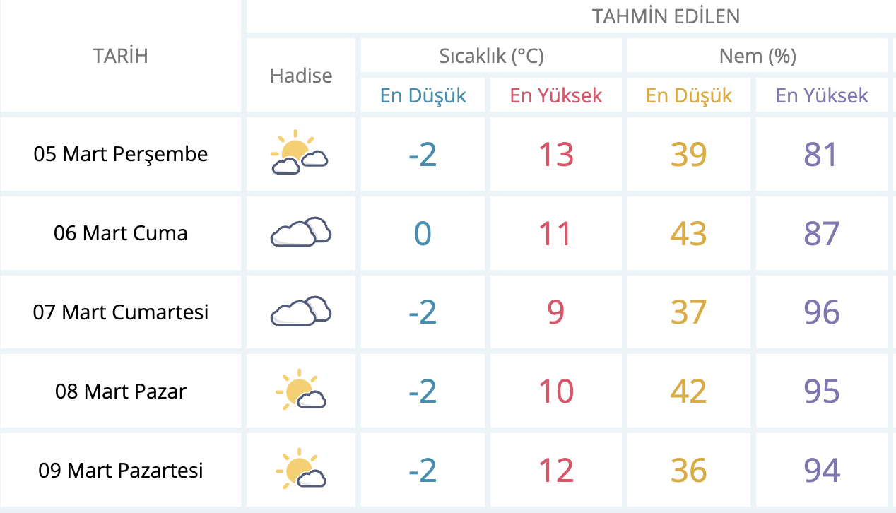 Rüzgarın değişik yönlerden hafif kuvvette esmesi öngörülüyor. Kent genelinde güncel meteorolojik uyarı bulunmuyor. Yetkililer, mevsim normallerinin üzerindeki sıcaklıkların özellikle sabah ve akşam saatlerindeki serinlik ile birlikte hissedilir fark oluşturabileceğini belirtiyor.