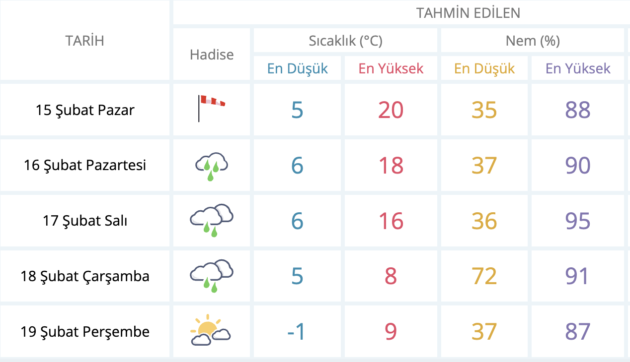 Rüzgarın gün boyunca güney ve güneybatı yönlerden esmesi bekleniyor. Akşam saatlerine doğru rüzgarın yer yer orta kuvvete ulaşacağı, açık alanlarda ve yüksek kesimlerde daha sert hissedilebileceği belirtiliyor. Kısa süreli kuvvetli rüzgar ihtimaline karşı özellikle sürücüler ve açık alanda çalışan vatandaşların dikkatli olması isteniyor.