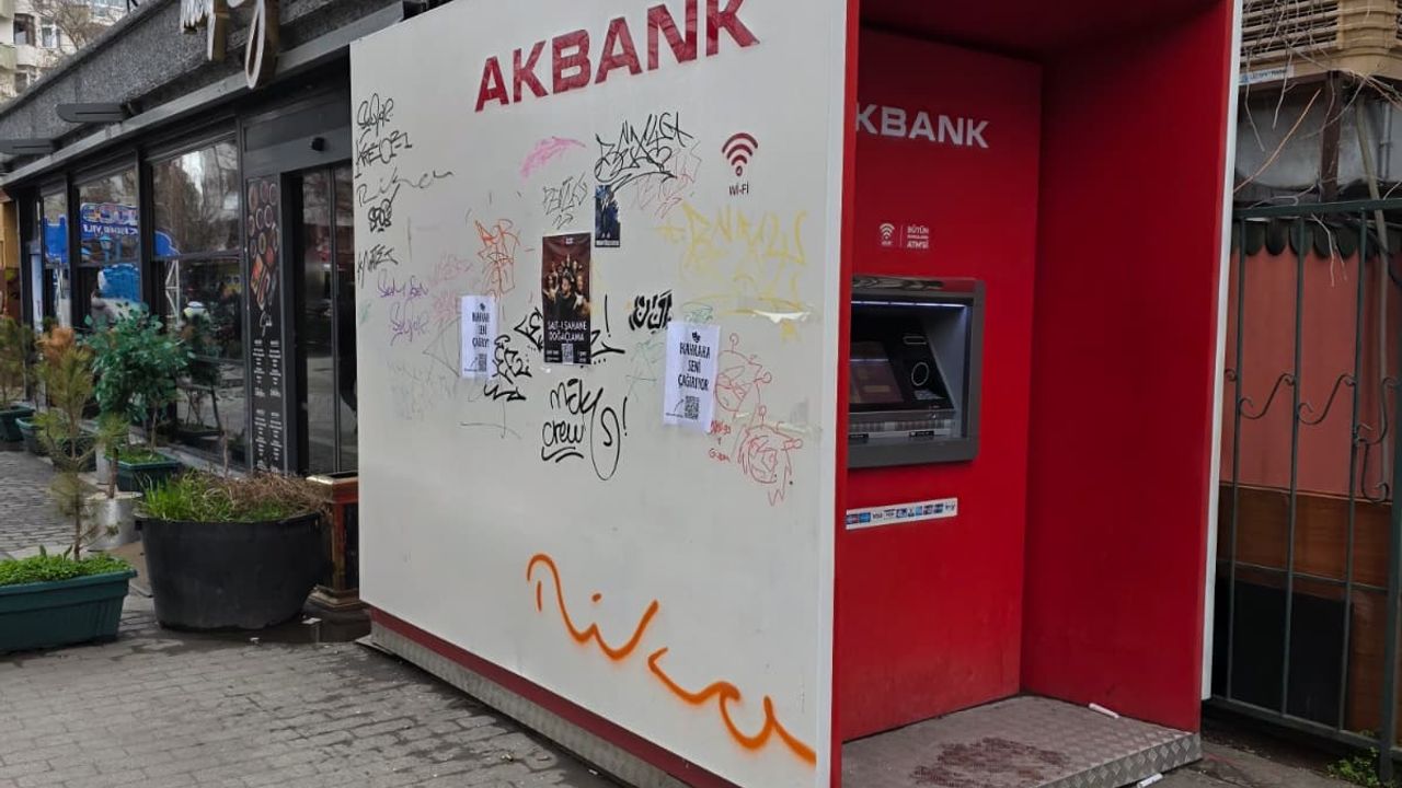 Eskişehir’in Hoşnudiye Mahallesi Köprülü Sokak üzerinde yer alan bankamatik, kimliği belirsiz kişi ya da kişilerce tahrip edildi. ATM’nin dış yüzeyine sprey boyayla yazılar yazıldığı, cihazın çeşitli afişlerle kaplandığı görüldü. Ortaya çıkan manzara, bankacılık hizmeti almak isteyen vatandaşların da dikkatini çekti.
