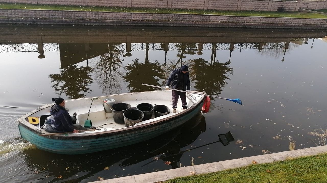 Ana cadde ve sokaklara başta olmak üzere müdürlüğe bağlı ekipler, dökülen yapraklarla kaplanan Porsuk Çayına sabah saatlerinde sandal ile inerek dökülen yapraklardan arındırdı. Porsuk Bulvarı'nın Adalar bölgesinden ikiye ayrılan sandallı görevliler, eski otogar bölgesi ile Kütahya Caddesi boyunca dökülen yaprakları topladı. Görevli ekipler ayrıca, yine Porsuk Çayı kenarında da karşılıklı çalışma yürüttü.