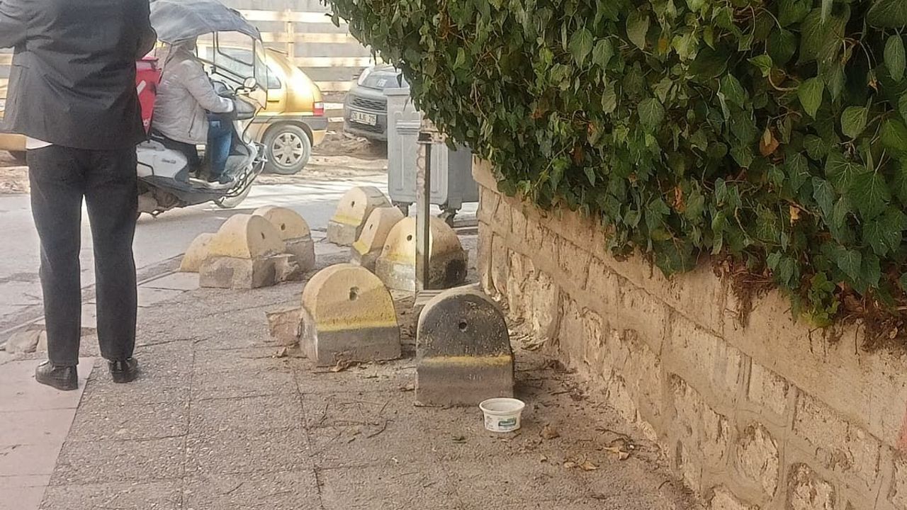 Eskişehir’in Özdilek Kültür Merkezi sokağında, beton dubaların kaldırım kenarına toplu halde bırakıldığı görüldü. Yan yana dizilen dubalar, yaya yolunun daralmasına yol açarken, sokakta yürüyenlerin dikkatini çekti. Dubaların bazı bölümlerde geçiş alanını sınırlandırdığı ve kaldırım düzeninde farklı bir görüntü oluşturduğu gözlendi. Yaya hareketliliğinin sürdüğü sırada bu düzensizlik, özellikle yoğun saatlerde sorun teşkil ediyor.