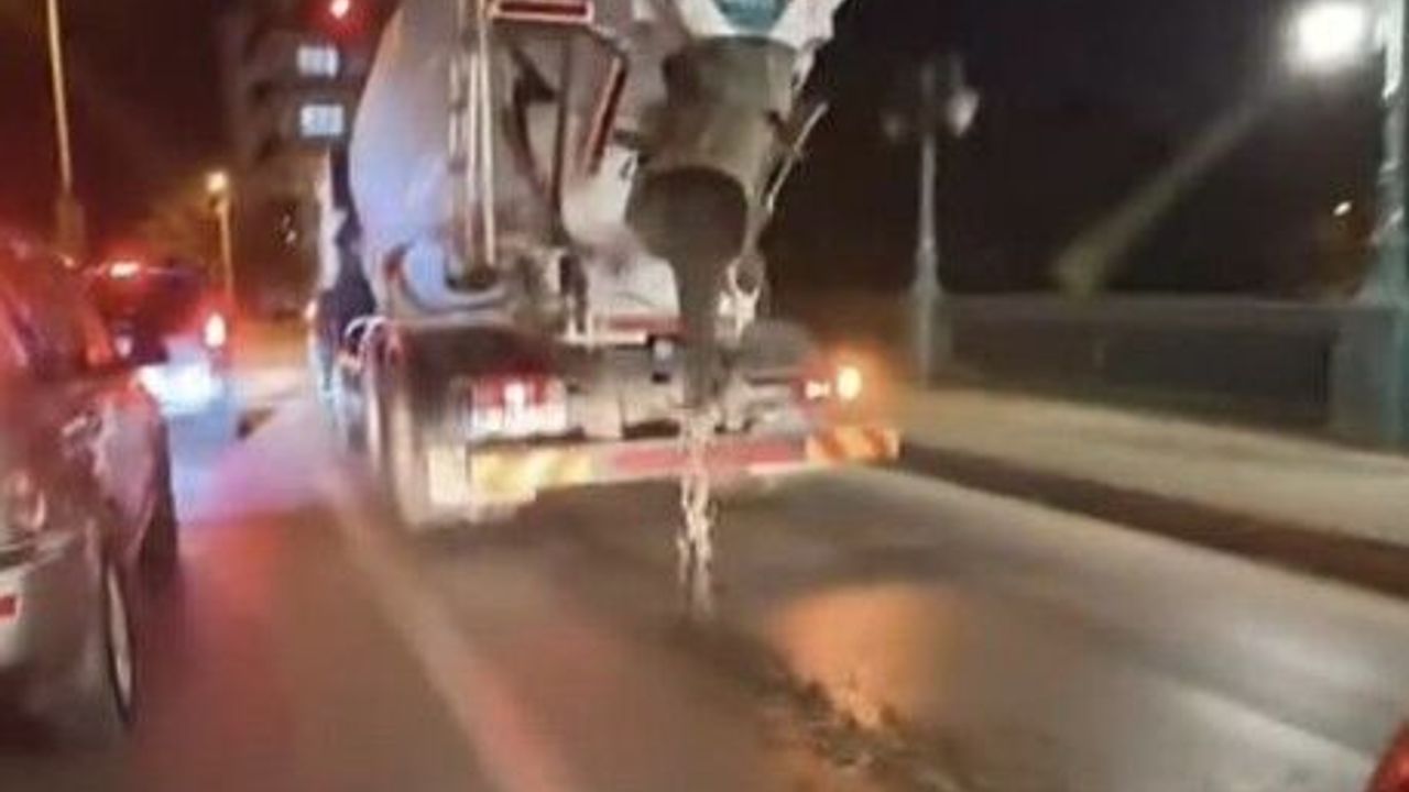 Eskişehir’de beton döken mikserin henüz belirlenemeyen bir sebeple haznesindeki betonu yola dökerek ilerledi. Trafiği tehlikeye düşüren mikser sürücüsüne bir motosikletli, kornayla ve işaretlerle uyarıda bulunmaya çalıştı. Ancak sürücünün dikkate almadığını belirten motosikletli, yaşananları kask kamerasıyla kayıt altına aldı.