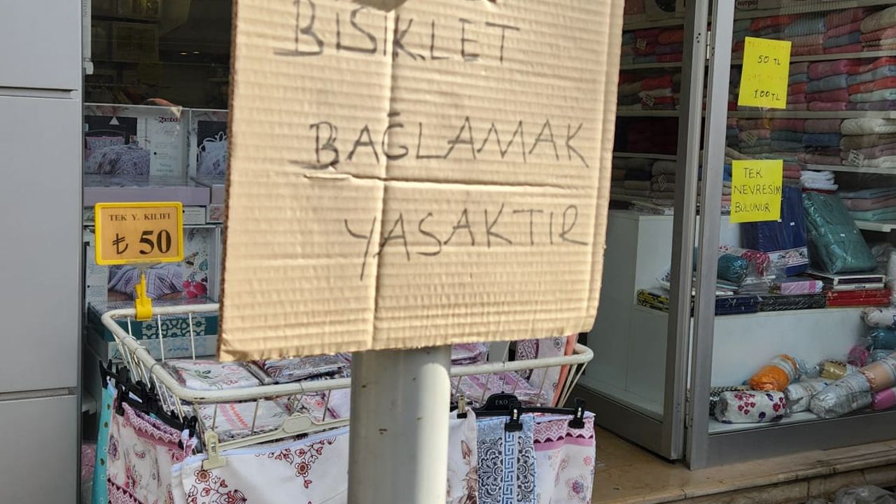 Eskişehir’in işlek noktalarından birinde, esnaf artan bisiklet bağlama yoğunluğuna tepki gösterdi. Dükkan önüne bisikletlerin sıkça bağlanması nedeniyle hem işyerine erişimin zorlaştığını hem de görüntü kirliliği oluştuğunu belirten esnaf, direğe “Bisiklet Bağlamak Yasaktır” yazısı astı. Vatandaşlar, bisikletlerin yayaların ve esnafın alanını daralttığını ifade ederken; bazı bisiklet kullanıcıları ise uyarı yazısının sert bulduğunu söylüyor.