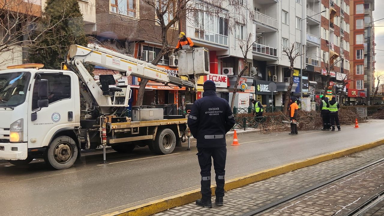 Eskişehir’de Yılmaz Büyükerşen Caddesi üzerinde bulunan ağaçlarda budama çalışması gerçekleştirildi. Büyükşehir Belediyesi Park ve Bahçeler Dairesi Başkanlığı ekipleri tarafından yürütülen çalışmalarda, kuruyan ve kontrolsüz şekilde uzayan dallar temizlendi.