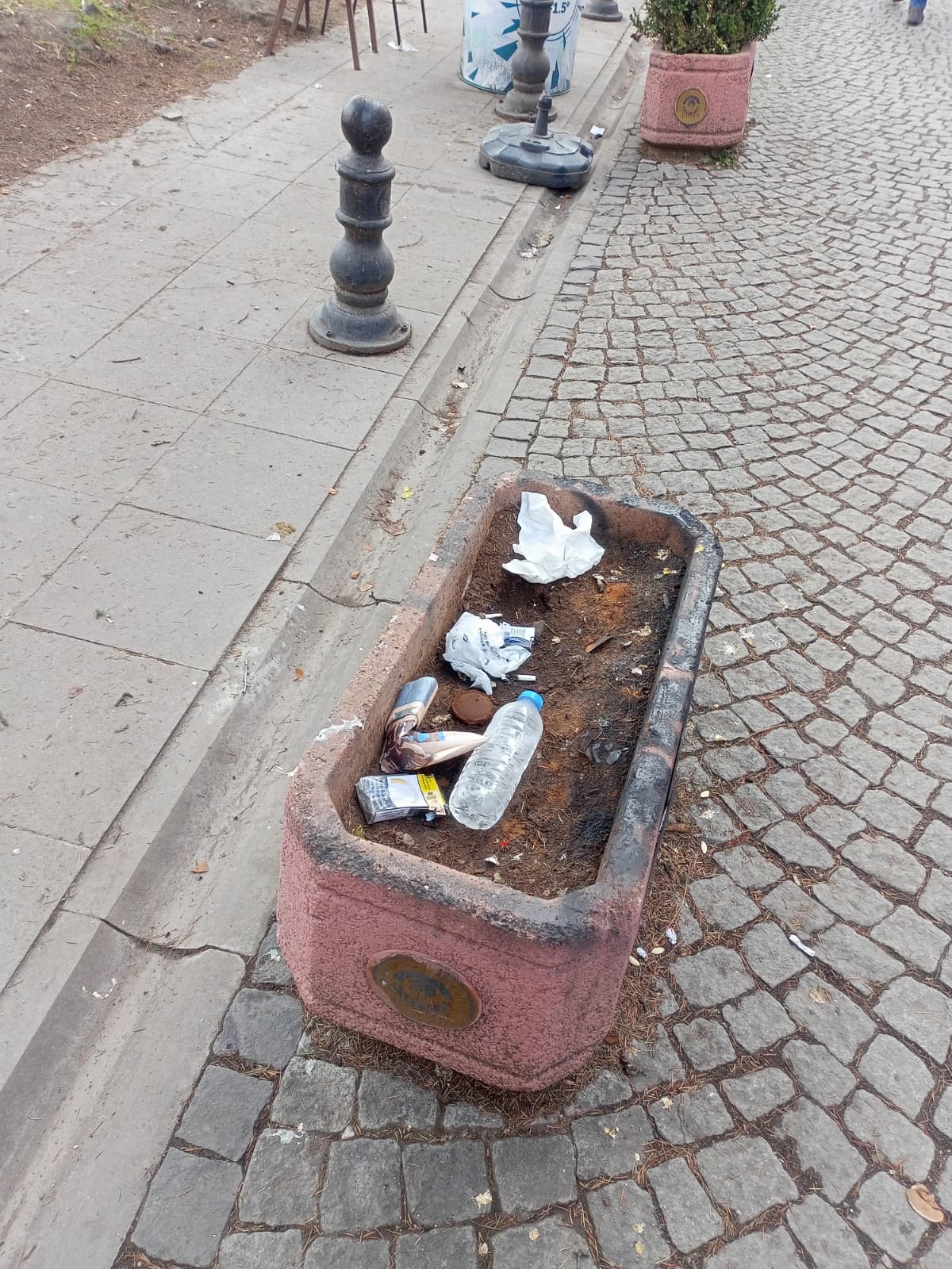Kent estetiğine katkı sunması beklenen saksıların bu şekilde değerlendirilmesi, şehirdeki ortak yaşam alanlarının nasıl hoyratça kullanıldığını bir kez daha ortaya koydu. Küçük gibi görünen bu görüntü, genel çevre düzeni açısından büyük bir sorun alanına işaret etti. Bölgeden geçen vatandaşlar için görsel olarak rahatsız edici bir manzara oluşturan durum, çevre temizliği ve ortak kullanım bilincinin yetersizliğini gündeme taşıdı. Kamusal alanların korunmasının yalnızca belediyelerin değil, tüm vatandaşların ortak sorumluluğu olduğu gerçeği bu görüntüyle bir kez daha hatırlatıldı.