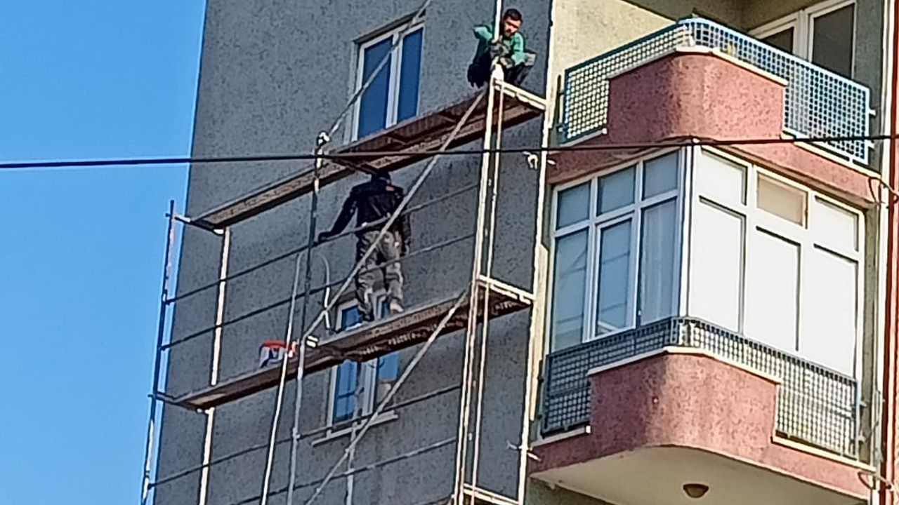 Eskişehir’de Ulus Anıtı tramvay durağı karşısında bulunan Başak Sitesi’nin dış cephesinde yapılan tadilat çalışması, güvenlik önlemlerinin yetersizliği nedeniyle dikkat çekti. Binanın yüksek cephesine kurulan iskele üzerinde çalışan işçilerin baret, kemer ve diğer koruyucu ekipmanlar olmadan çalıştığı görüldü.