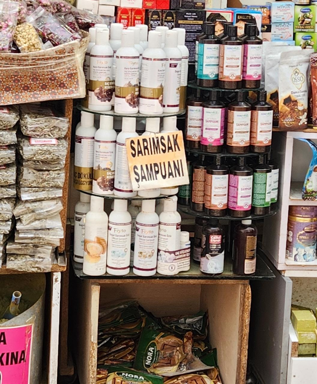 Aktarlarda ve doğal ürün satış noktalarında satılan sarımsak şampuanı, son dönemde vatandaşların ilgisini çekiyor. Doğal sarımsak özüyle hazırlanan şampuanın, saç dökülmesini azaltma, kepeği önleme ve saç köklerini güçlendirme gibi etkileri bulunduğu belirtiliyor.