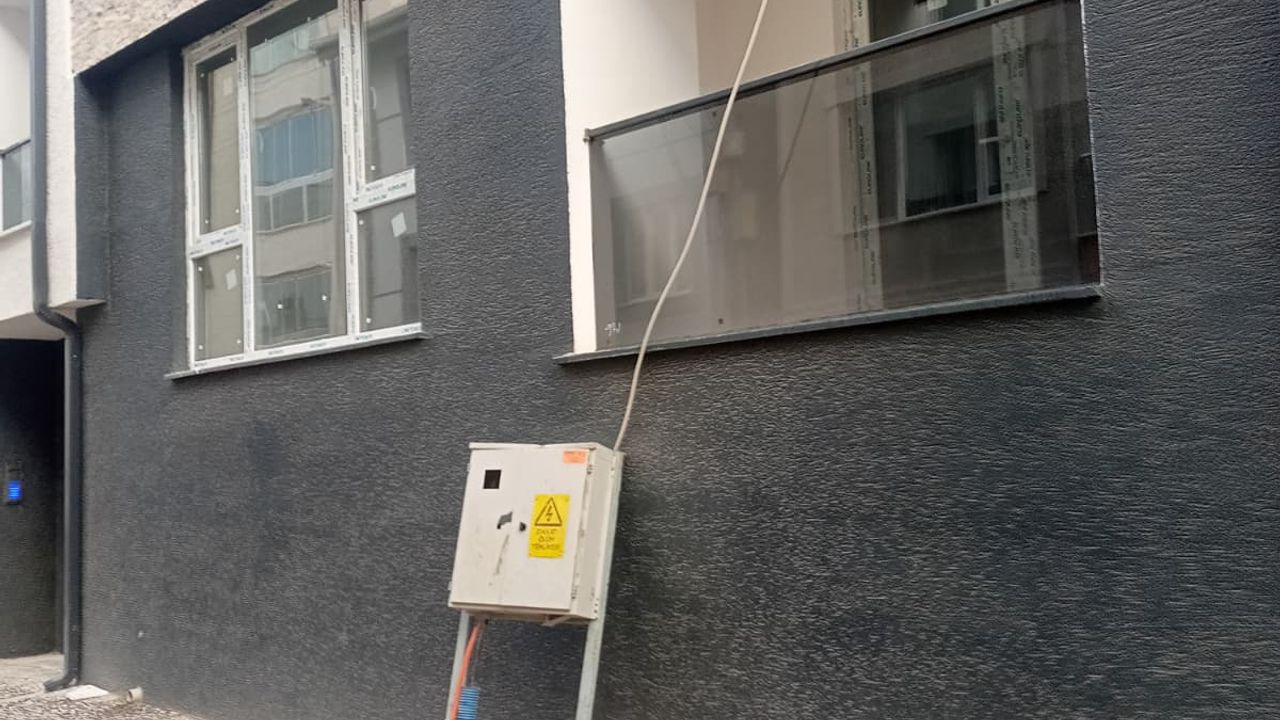 Şirintepe Mahallesi’nde bir binanın giriş kısmında bulunan elektrik panosunun eğik şekilde durması ve kabloların açıkta olması, çevrede yaşayan vatandaşların dikkatini çekti. Yapı işlerinin sürdüğü görülen sokakta, panonun zemine tam sabitlenmemesi olası bir tehlikeyi beraberinde getiriyor.
