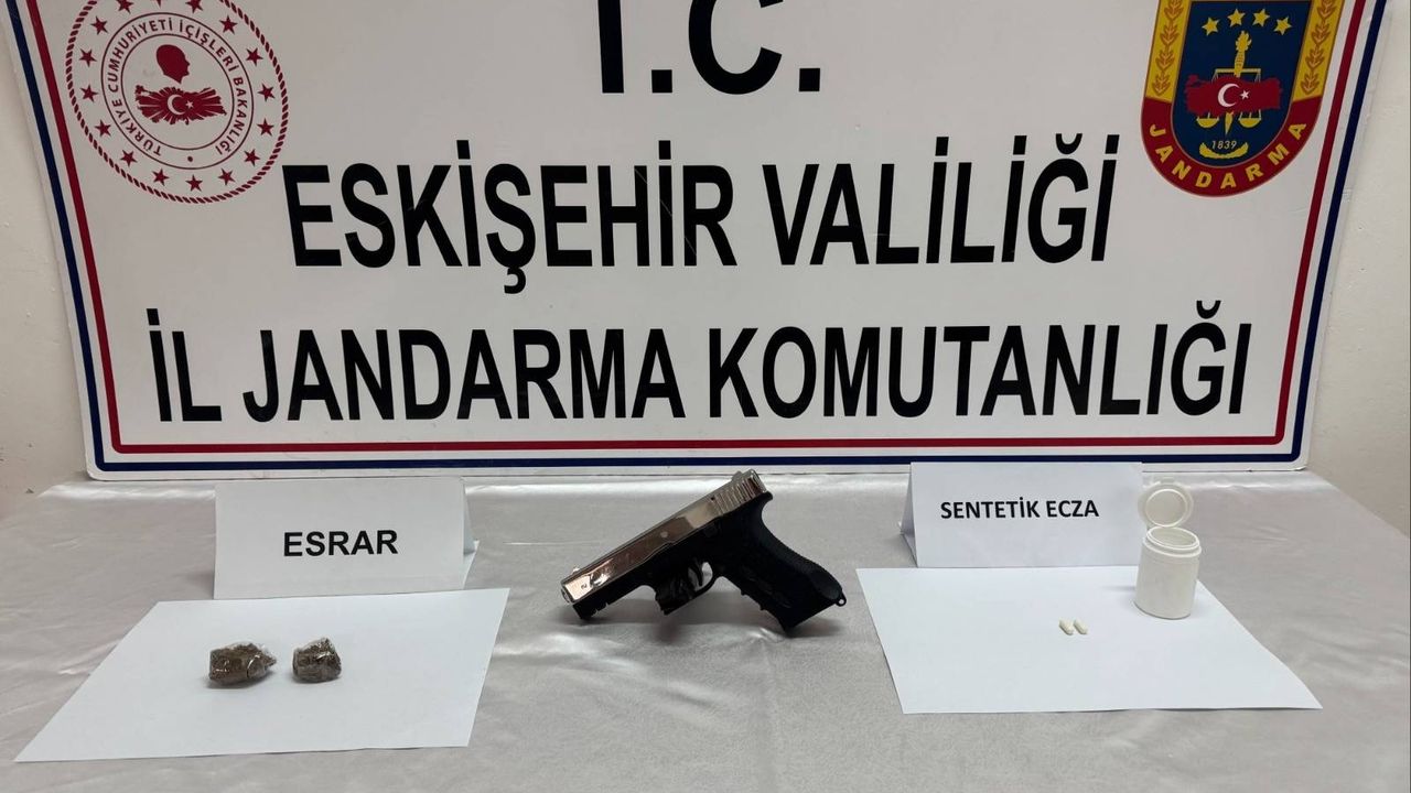 Eskişehir’in Seyitgazi ilçesinde jandarma ekipleri tarafından düzenlenen operasyonda, bir şüphelinin üzerinde ve evinde yapılan aramalarda uyuşturucu madde, sentetik hap ve ruhsatsız tabanca ele geçirildi. Olayla ilgili bir kişi hakkında adli işlem başlatıldı.