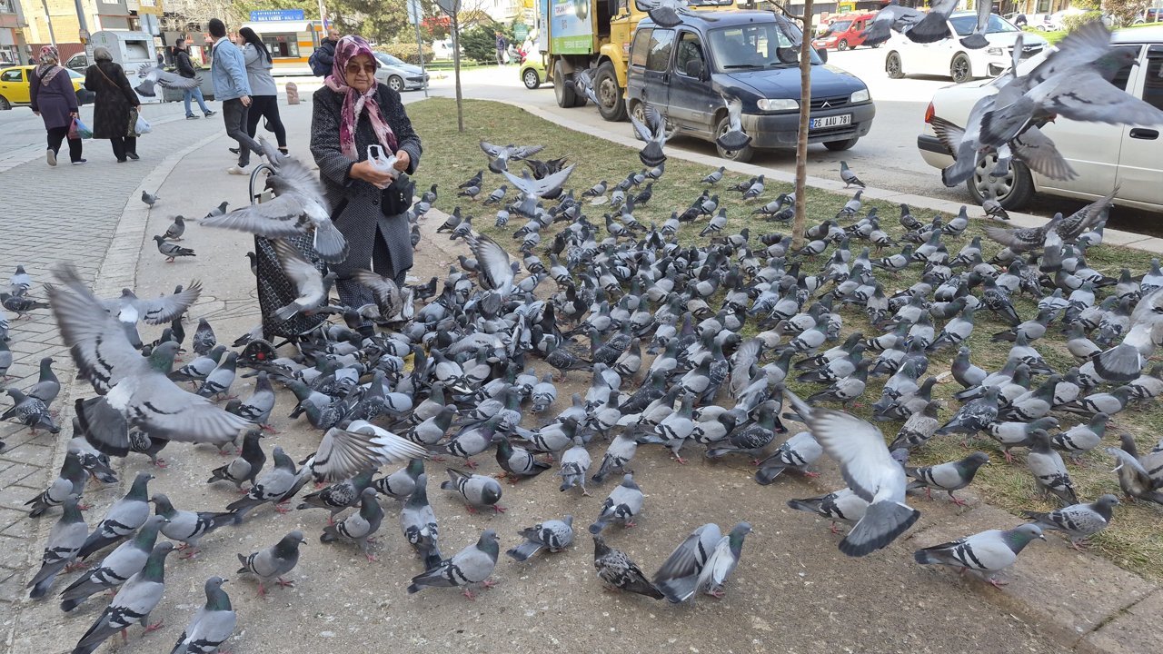 Eskişehir Sıhhiye Kavşağı’nda yaşanan olayda, yaşlı kadının yem verdiği anlarda onlarca güvercin etrafını sardı. Pazardan her dönüşünde kuşlar için yem aldığını söyleyen Toy, özellikle bulgur ve pirinçle güvercinleri beslediğini ifade etti.