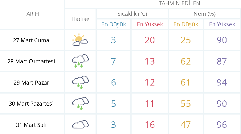 Yetkililer, hava sıcaklıklarında önemli bir değişiklik öngörülmediğini belirtirken, rüzgarın kuzeyli yönlerden hafif, zaman zaman ise orta kuvvette eseceğini bildirdi. Öte yandan, güncel herhangi bir meteorolojik uyarının bulunmadığı ifade edildi. İl genelinde sıcaklıkların ilçelere göre değişiklik göstereceği tahmin edilirken, en yüksek sıcaklığın 19 derece ile Sarıcakaya ve Mihalgazi’de, 17 derece ile Odunpazarı’nda ölçülmesi bekleniyor. Uzmanlar, çok bulutlu havaya rağmen sıcaklıkların mevsim normallerinde seyredeceğini belirterek vatandaşların günlük planlarını buna göre yapabileceğini kaydetti.