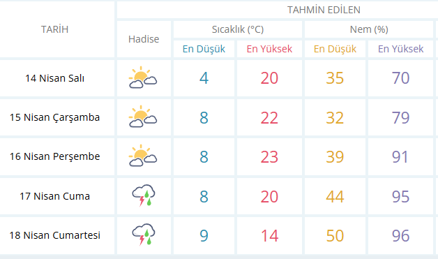Bölge genelinde de benzer bir hava durumu öne çıkıyor. Parçalı bulutlu gökyüzünün hakim olacağı tahmin edilirken, sıcaklıkların 3 ila 5 derece arasında artması bekleniyor. Rüzgarın ise kuzey ve kuzeybatı yönlerden hafif, zaman zaman orta kuvvette eseceği öngörülüyor.