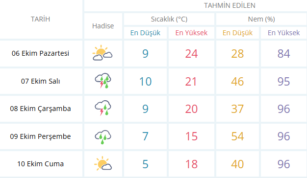 Kent merkezinde 24 dereceye kadar yükselecek sıcaklık, akşam saatlerinde 9 dereceye kadar düşecek. Şehir genelinde rüzgâr hafif, nem oranı ise yüzde 40-45 civarında seyredecek.