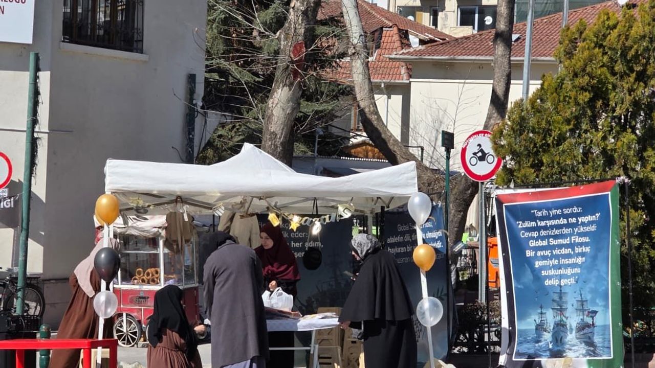 Eskişehir'de sabahın erken saatlerinde kurulan ve “Global Sumud Filosu”na destek mesajları içeren afişlerle donatılan yardım standı, Eskişehirlilerden yoğun ilgi görüyor. Bölgede yaşanan insanlık dramına kayıtsız kalmak istemeyen ve tamamı kadınlardan oluşan gönüllüler tarafından yönetilen kampanyada, Filistinlilere ulaştırılmak üzere bağış toplanıyor. Yaklaşan Ramazan Bayramı’nın da manevi iklimiyle birlikte vatandaşlar; fitre, zekat ve çocukların bayram harçlıkları gibi yardımlarını Gazze’deki ihtiyaç sahiplerine ulaştırılması gayesiyle bu stant aracılığıyla bağışlıyor. Stant çevresinde aynı zamanda simit satışı gibi ufak çaplı kermes faaliyetleri de yürütülerek elde edilen gelir kampanyaya aktarılıyor. Özellikle kadınların öncülük ettiği bu anlamlı dayanışma hareketine, Köprübaşı Caddesi’ni kullanan her yaştan vatandaşın yoğun katılım sağladığı ve bölge halkının kampanyaya duyarlılık gösterdiği öğrenildi. Yardım çadırının belirli bir süre daha bölgede bağış kabul etmeye devam etmesi planlanıyor.