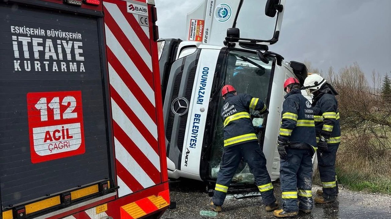 Eskişehir'in Odunpazarı ilçesine bağlı Uluçayır Mahallesi yakınlarında meydana geldi. Edinilen bilgilere göre, seyir halindeki çöp kamyonu, yağış nedeniyle kayganlaşan yolda sürücüsünün kontrolünden çıkarak devrildi.