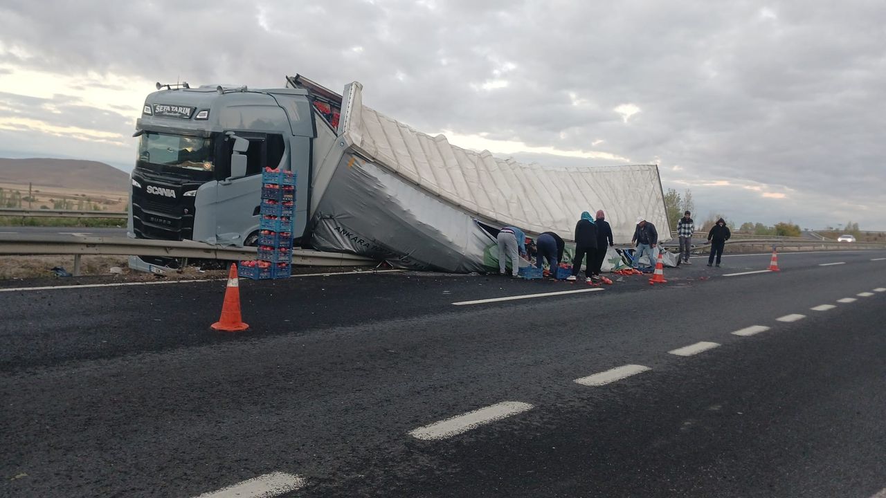 Eskişehir’in Sivrihisar ilçesinde, Ankara yönündeki kara yolunda sebze yüklü bir tır devrildi. TŞOF Sivrihisar Dinlenme Tesisi yakınlarında meydana gelen kazada, tır sürücüsü direksiyon hakimiyetini kaybederek aracın devrilmesine neden oldu. Kazada sürücü hafif yaralanırken, tırda bulunan sebzeler yol kenarına saçıldı.