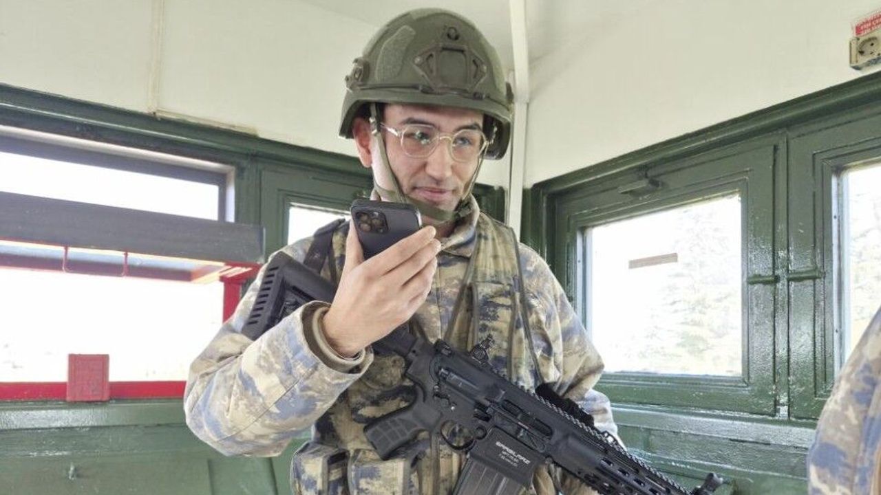 Eskişehir'de vatan nöbetini 7 gün 24 saat sürdüren askerler, bayram sabahında komutanlarıyla bayramlaşırken anlamlı bir sürpriz yaşandı. Nöbet kulesinde görev yapan bir askeri denetleyen komutanı, cep telefonunu uzatarak annesiyle görüşmesini sağladı.