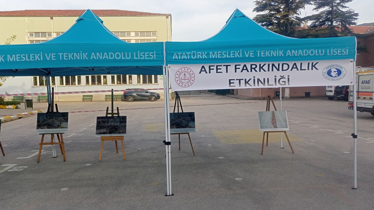 Eskişehir’de Atatürk Mesleki ve Teknik Anadolu Lisesi, öğrencilerde deprem ve afet bilincini artırmak amacıyla “Afet Farkındalık Etkinliği” düzenledi. Okul bahçesine kurulan stantlarda, geçmiş depremlerden karelerin yer aldığı fotoğraf sergisi öğrencilerle buluşturuldu.