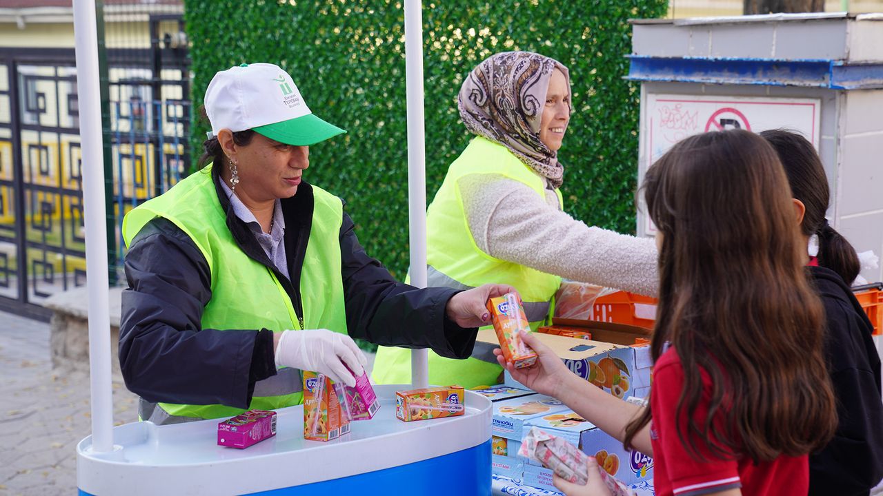 Belediyeye ait Nihal-İsmail Akçura Aşevi’nde özenle hazırlanan öğünler, okul girişlerinde kurulan stantlar aracılığıyla öğrencilerle buluşturuluyor.
