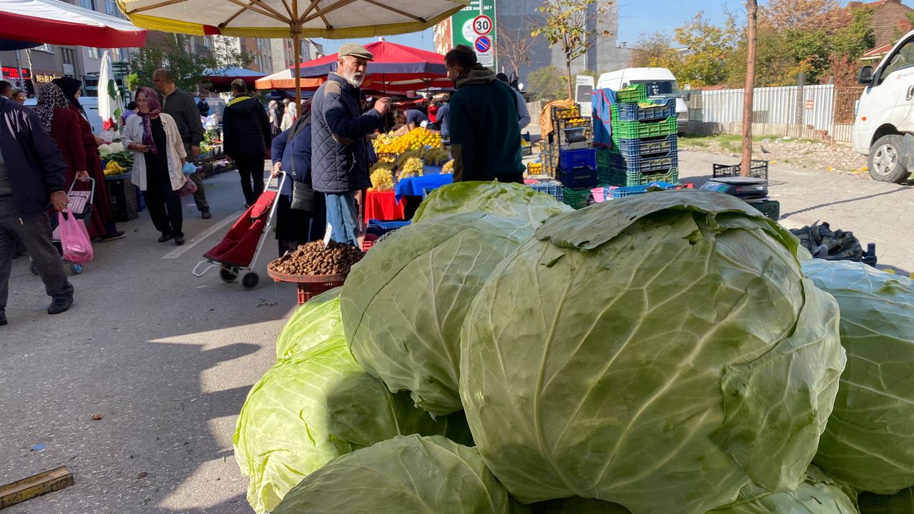 Eskişehir’de pazar tezgahlarında sergilenen devasa lahanalar vatandaşların ilgisini çekiyor. Özellikle sarma ve turşu yapmak isteyenlerin tercih ettiği lahanalar, büyüklüklerine göre 80 ile 180 lira arasında satılıyor.