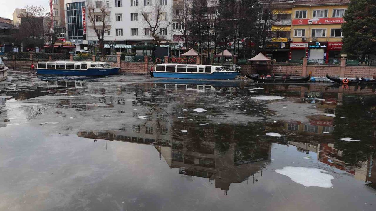 Şehrin simgelerinden biri olan Porsuk Çayı, yaklaşık 15 gündür donmuş haldeydi. Özellikle gece saatlerinde etkisini artıran soğuk hava, çayın büyük bölümünde kalın bir buz tabakasının oluşmasına neden olmuştu.