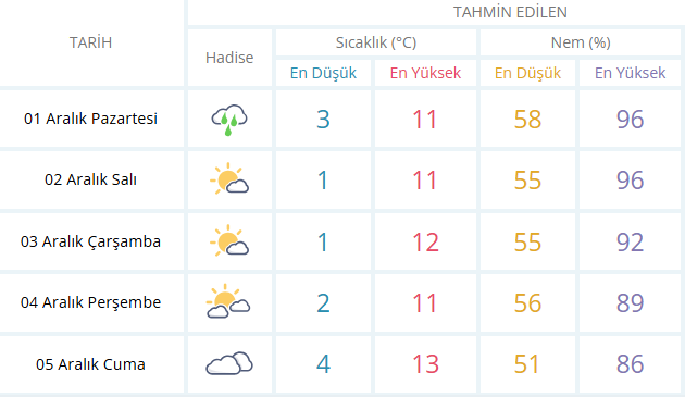 Gün boyunca sıcaklıklarda kayda değer bir değişiklik olmayacak. Hava, mevsim normallerinin tam da merkezinde ilerliyor. Rüzgârın güney ve batı yönlerden hafif ve zaman zaman orta kuvvette esmesi bekleniyor. Bu rüzgâr akışı, yağışların güney hattında lokal kalmasına neden olacak. Meteoroloji uzmanları, akşam saatlerinde yağış olasılığının düşeceğini ve hava koşullarının yeniden çok bulutlu, sakin bir yapıya döneceğini belirtiyor. Sis, gecenin ilerleyen saatlerinde yeniden yer yer etkisini gösterebilir.