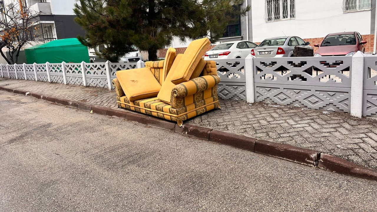 Eskişehir’in Ertuğrulgazi Mahallesi’nde bir sokak kenarına atılan eski koltuk, çevrede yaşayan vatandaşların tepkisine neden oldu. Kullanılmayan eşyanın günlerdir kaldırılmaması, hem çevre kirliliğine yol açtı hem de görüntü kirliliği oluşturdu. Mahalle sakinleri, büyük hacimli eşyaların gelişi güzel sokağa bırakılmasının yanlış olduğunu belirterek, bu durumun diğer vatandaşlara da kötü örnek oluşturduğunu ifade etti. Bazı vatandaşlar, koltuğun çocuklar için tehlike yaratabileceğini belirtti. Sakinler, bu tür büyük eşyaların belediyenin ilgili birimleri tarafından ücretsiz olarak toplanabildiğini hatırlatarak, vatandaşları doğru yöntemleri kullanmaya çağırdı. Koltuğun bir an önce kaldırılması bekleniyor.