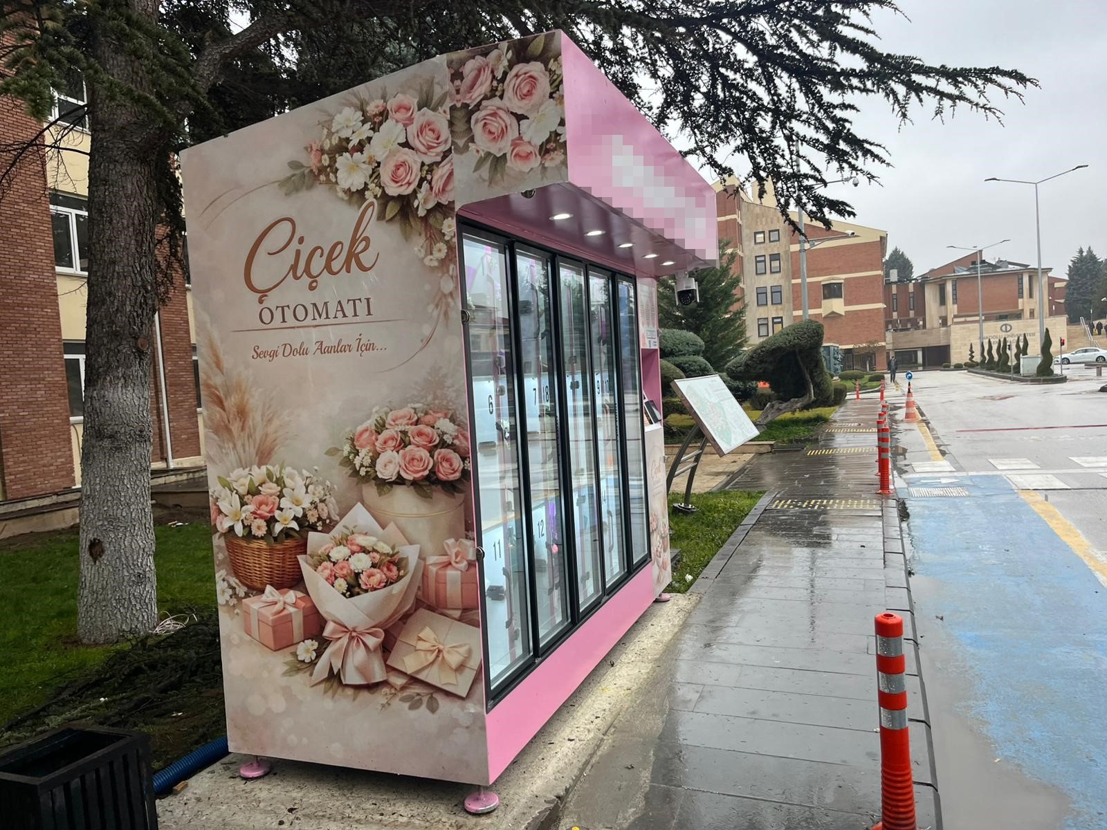 Eskişehir’de Anadolu Üniversitesi kampüsü içinde yerleştirilen çiçek otomatı, öğrencilerin ve ziyaretçilerin ilgisini çekiyor. Kampüs içerisinde alışılmışın dışında bir uygulama olarak konumlandırılan otomat, özellikle sürpriz yapmak isteyenlerin dikkatini çekiyor.