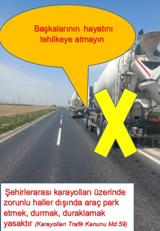 – Yerleşim yeri dışındaki karayollarına araç park etmekten kaçınılmalı